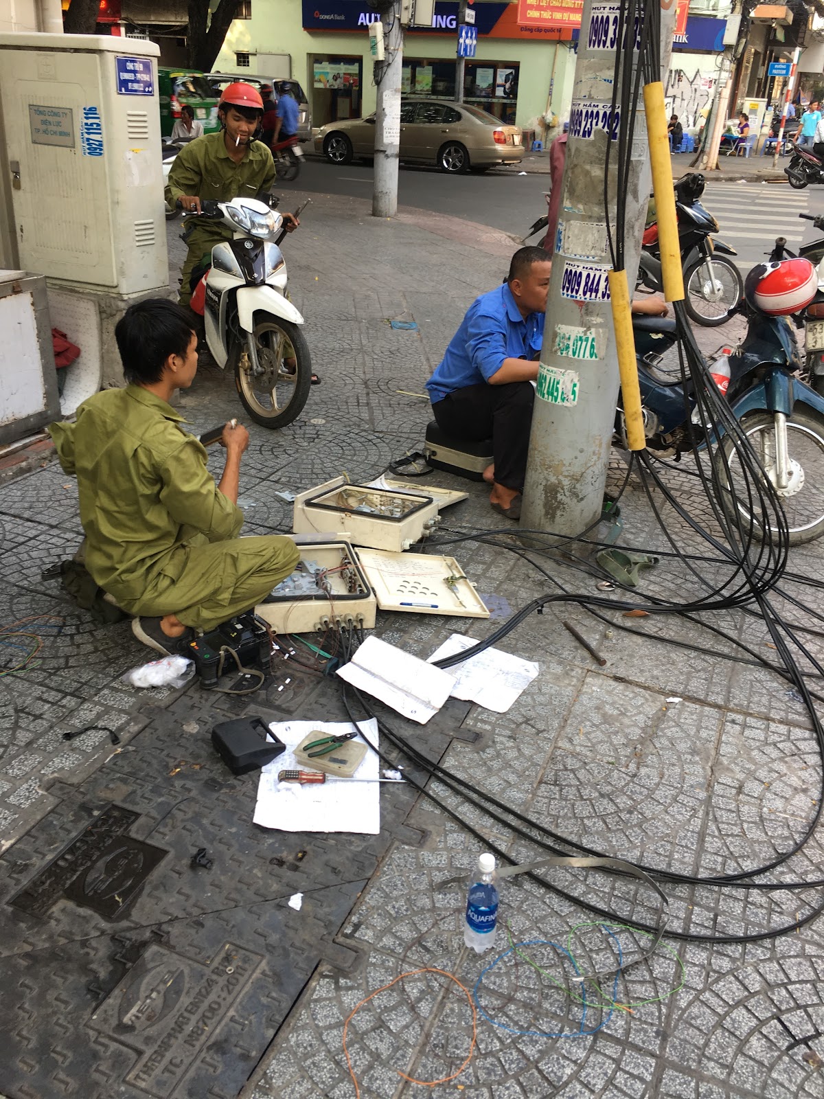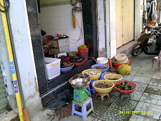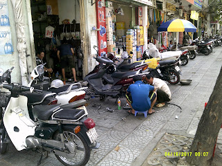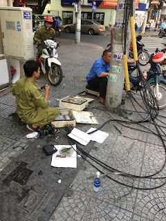 It was Easter Sunday and I had no plan for my first day. Strangely I wasn’t too jet lagged, but I think I did sleep some on the plane during the 25 hour trip from Portland. On the street in Saigon it was over 100⁰ F so after coffee and some great pastry, (as befitting a former French colony) I went looking for some sunscreen. The entire city seems like a giant kiosk/bodega, which seemed to follow neighborhood patterns - some blocks everybody sells plumbing supplies, other shoes, etc. But I found my way to a street with lots of travel agencies, and eventually found some.