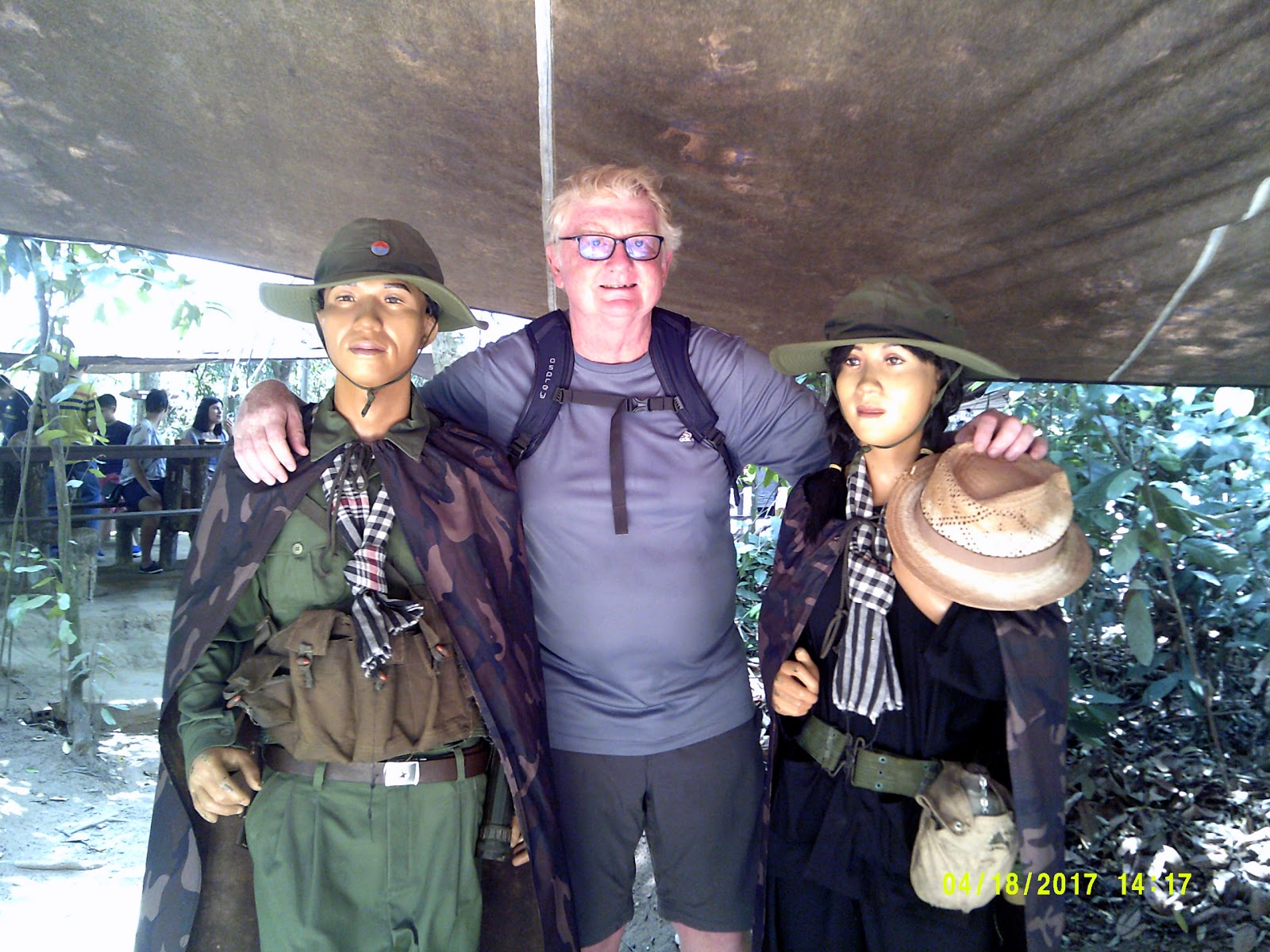 So, I was craving shade, and found a little park with some big trees, and a place to sit. What I would subsequently discover that as an older western man, walking in a park, a market or near a museum, that there would be many old Vietnamese men with well practiced self introductions. I was called over by an old man sitting on a bench.